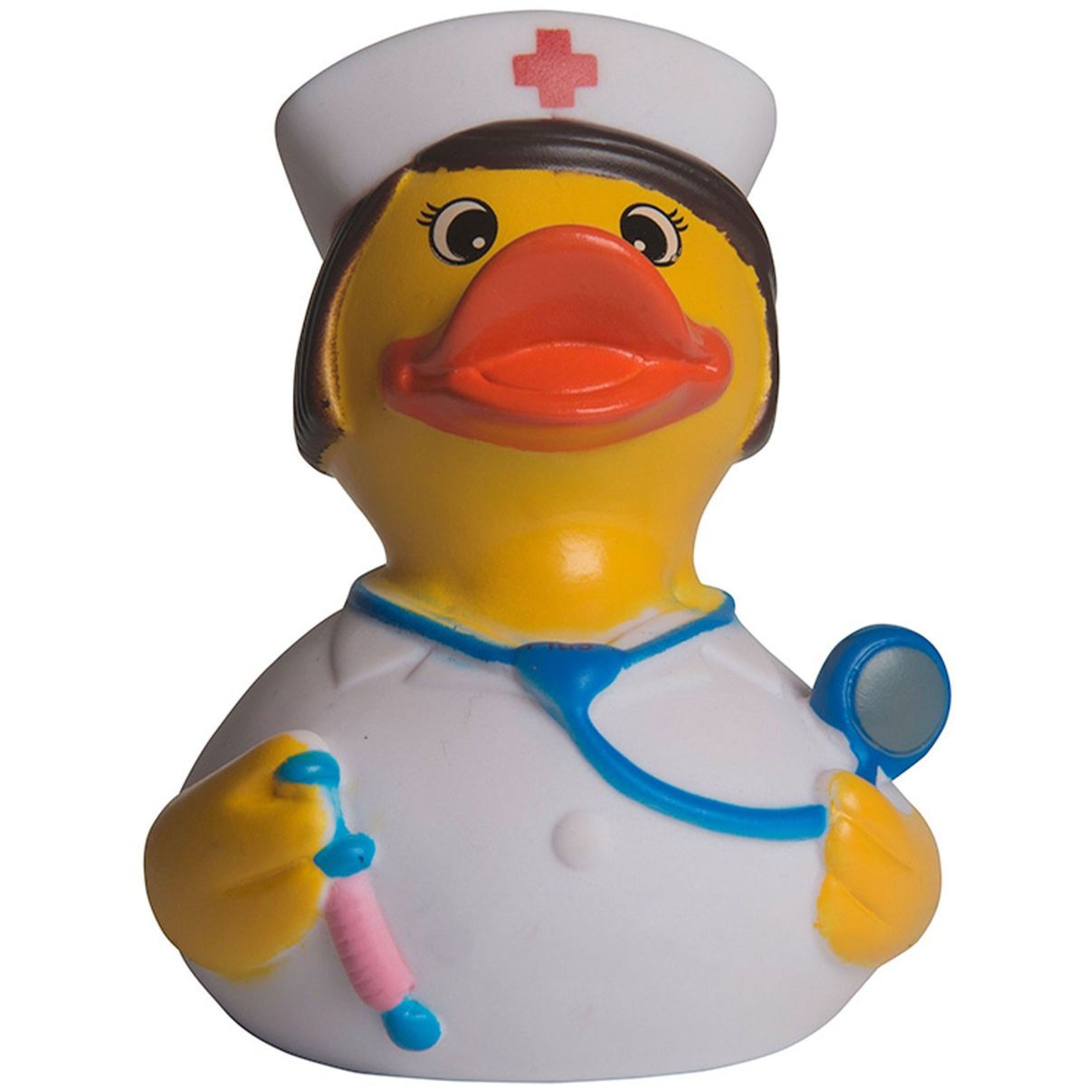 Our adorable Rubber Nurse Duck, the perfect promotional item to add a dose of fun to your marketing campaign! Dressed in a traditional nurse uniform complete with a cap and stethoscope, this charming rubber duck will delight clients and colleagues alike. Whether displayed proudly on desks or used as a quirky giveaway at medical events, our Rubber Nurse Duck is sure to inject smiles and boost brand recognition. Let this lovable mascot spread cheer while subtly promoting your brand with its charm!